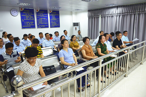 ????“武鸣区人民法院民事审判庭,现在开庭!”5月29日下午,随着清脆的法槌声响起,一起劳务合同纠纷案在我院五号法庭公开开庭审理。与此同时,一场庭审技能竞赛的观摩活动也在同步进行,由南宁市中院副院长梁满红任组长的庭审技能竞赛活动评审组一行11人现场观摩案件庭审,我院党组书记、院长傅豪及该院20余名员额法官一同到场观摩。