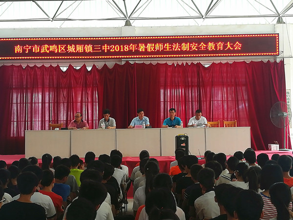 ????2018年7月6日上午,时值2018暑假前夕,我院刑事审判庭庭长邓殿熙来到城镇三中,给即将步入暑假生活的全体学生上了一堂生动形象、深入人心的法治教育课。
